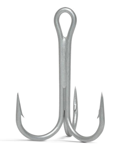 Un hameçon triple en acier perma de chez VMC, acier au vanadium avec pointe conique.