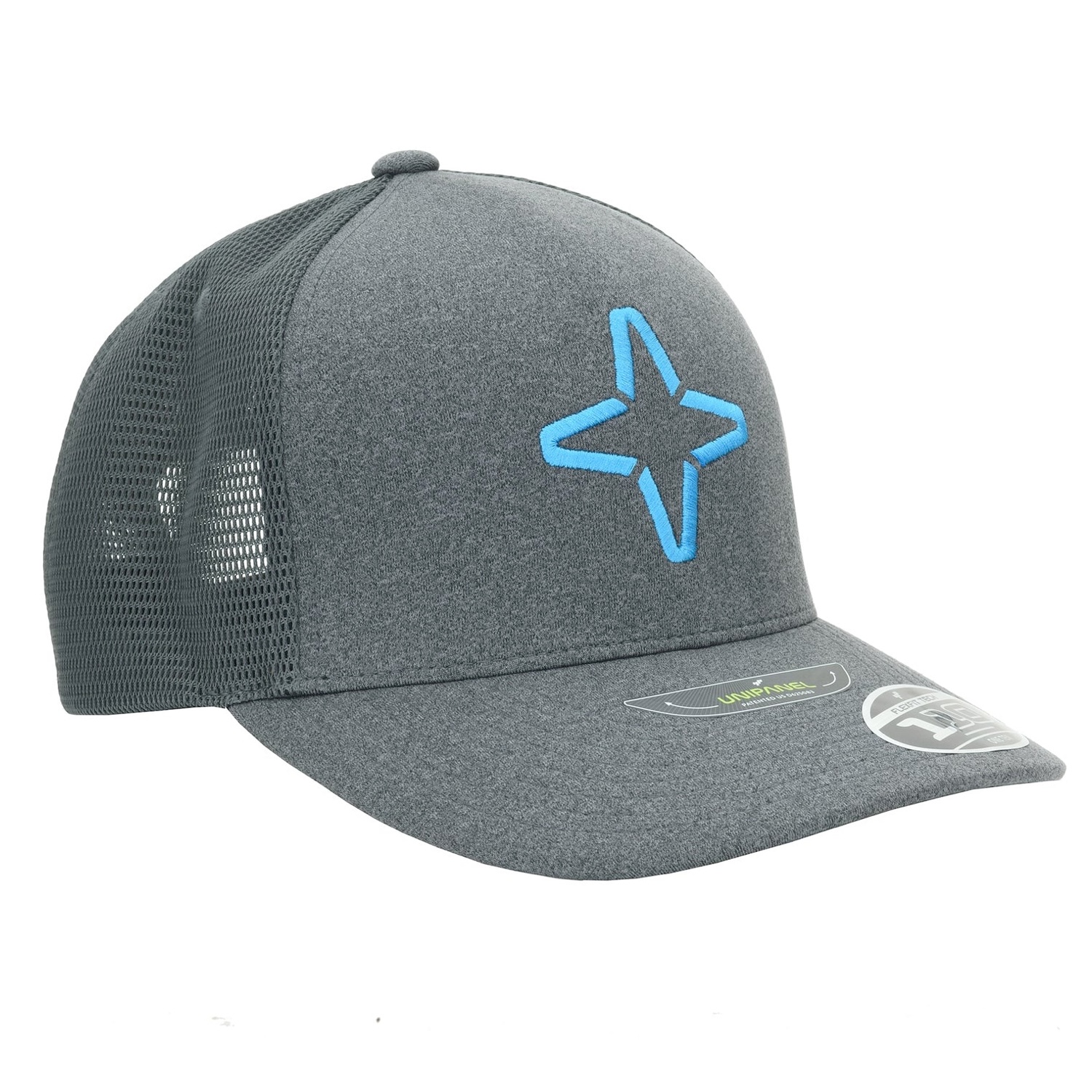 AAVA Nordic Star Cap Grey - La casquette Aava Star Is Born garantit un ajustement parfait, car elle est dotée d'un bouton-pression pour ajuster la taille et d'un bandeau Flexfit® extensible. Grâce à ce design unique, c'est la casquette la plus confortable. Il s'agit d'une casquette trucker avec des panneaux en maille élastique. Le panneau avant est doté d'une technologie unipanel brevetée et il n'y a pas de coutures à l'avant.
