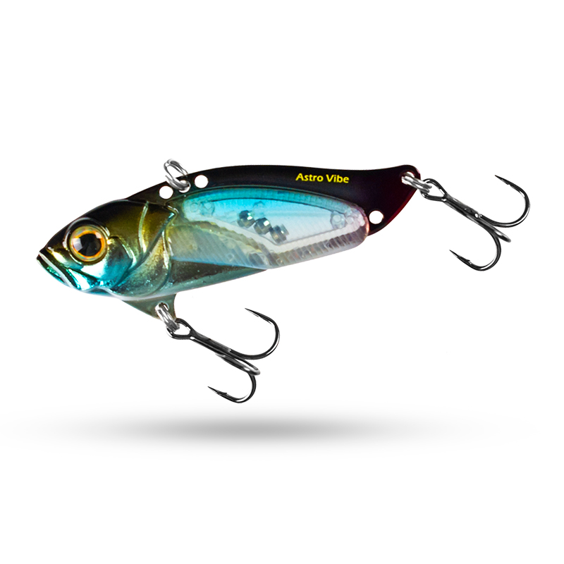 Le ventre est fait de plastique réactif aux UV qui s'illumine d'une lueur violette dans toutes les conditions météorologiques. L'Astro Vibe coule vite et peut donc être pêché très profond, même en vertical jigging. Pêchez-le rapidement et vous pouvez toujours le faire courir sur environ 2 mètres. Un leurre très polyvalent en effet !