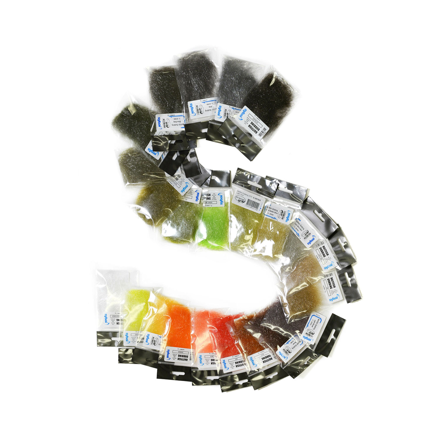 A utiliser tel quel ou à mélanger avec du dubbing naturel. Un doublage polyvalent pour tout, des plus grosses mouches à truite aux mouches à saumon et à bonefish (pour les motifs de poissons et de crevettes). Aussi connu sous le nom de STF (Synthetic Translucent Fiber).