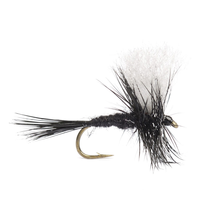 Black Gnat – Une mouche sèche classique qui imite les petits insectes noirs tels que les moucherons et les mouches. Très efficace pour pêcher la truite, l'ombre et l'omble, elle imite les insectes qui dérivent souvent à la surface de l'eau. La Black Gnat est particulièrement efficace durant toute la saison de pêche, notamment pendant les mois d'été.