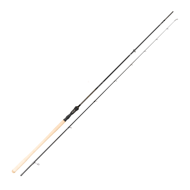 Les composants sont pensés pour la pêche côtière : anneaux Fuji SiC K-Guides adaptés aux tresses et aux longs lancers, porte-moulinet Fuji TVS léger avec bon contact sur le blank, et poignée liège pleine pour une bonne prise en main sur de longues sessions au bord de l’eau.
