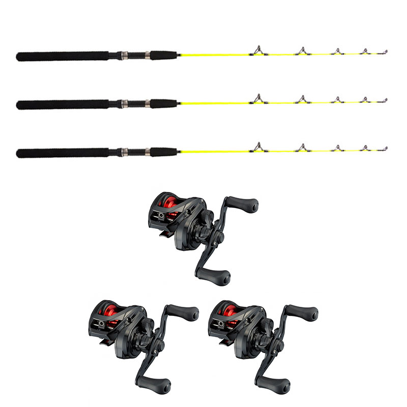 Ce pack comprend trois ensembles complets avec moulinets low-profile Daiwa PR100L pour gauchers et cannes classiques Fladen Ice Pike de 115 cm. Parfait pour partager avec des amis ou compléter votre équipement.