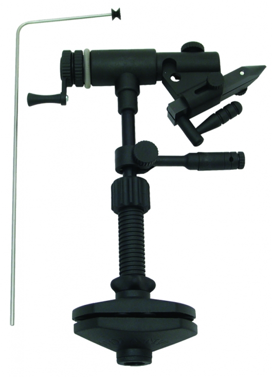 L'avantage de cet étau est que vous pouvez faire pivoter le mandrin et que l'arbre à crochet est toujours au même niveau horizontal sans vaciller, ce qui signifie "véritable rotation". < br /> Le mandrin est en acier suédois trempé et fait tourner les roulements avec une résistance réglable, peut gérer des tailles d'hameçons #6/0 - #24. Toutes les autres pièces sont en matériau composite, livrées avec support porte-bobine et bras télescopique en standard.