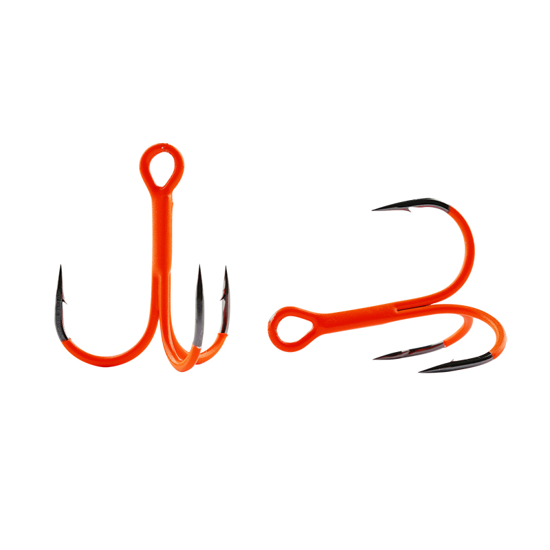 Crochets triples forts et super tranchants avec une pointe droite. Maintenant avec un revêtement UV orange pour plus d'attraction !