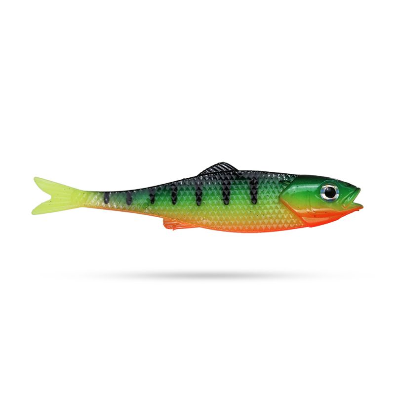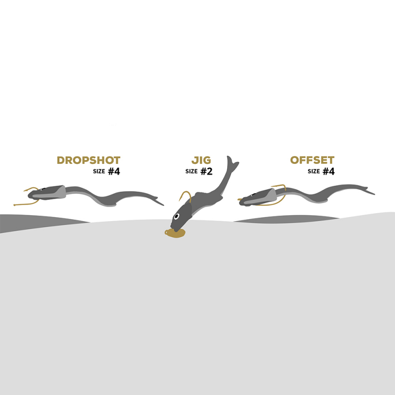 Le corps extrêmement mince se déplace de manière très similaire à un poisson mourant, même avec le moindre mouvement. Grâce à la tête plus épaisse des appâts, l'hameçon reste stable en place. A la différence de la plupart des leurres souples, le Finesse Filet se présente couché. Cela fait de Finesse Filet l'appât parfait pour pêcher les Finesse-Rigs.