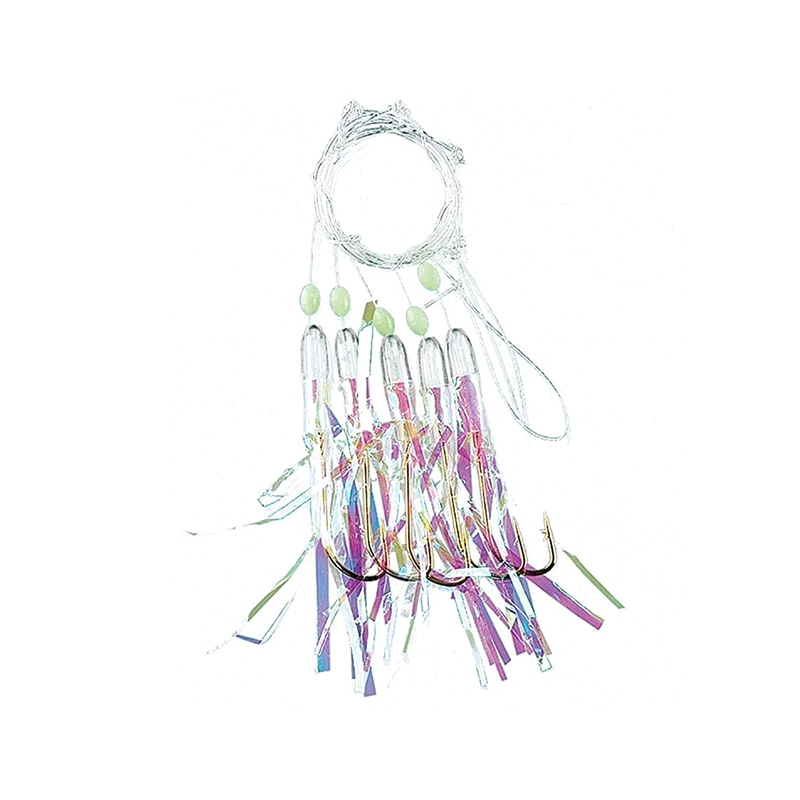 Montage avec corps en caoutchouc, guirlande et perle lumineuse pour la pêche au hareng/maquereau.