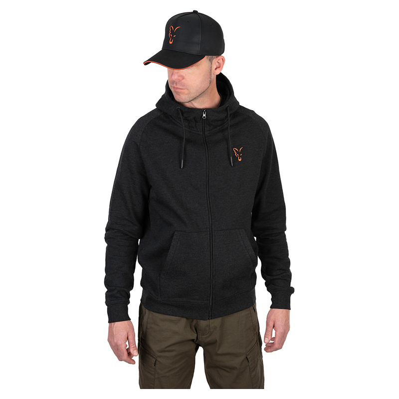Sweat à capuche léger en noir avec impression du logo Fox orange. Poche kangourou avec poche de sécurité interne à fermeture à goujon cachée.