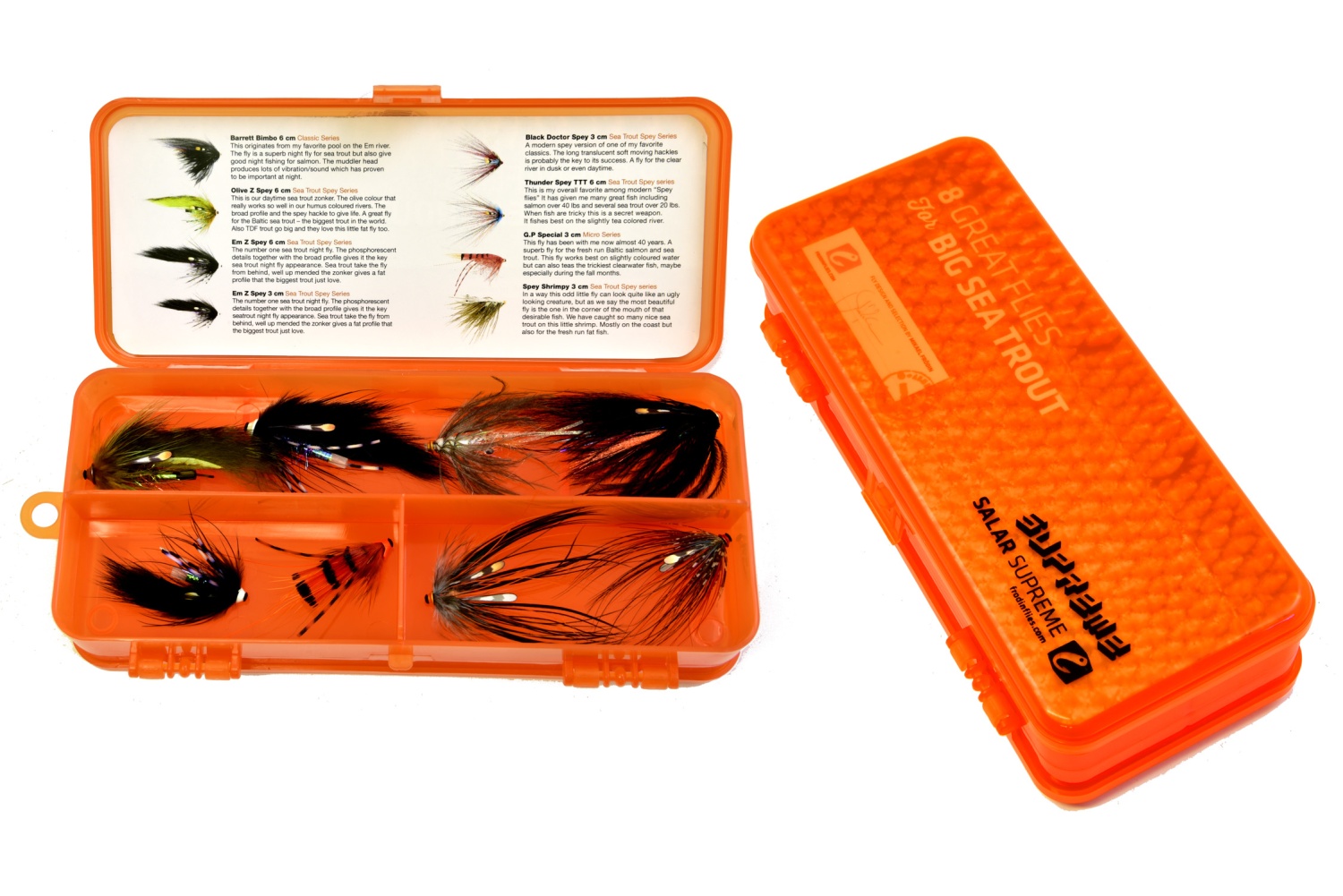 Ce coffret contient un mélange de mouches pour la pêche de jour, de soir et de nuit. Chacune de ces mouches a permis de capturer des truites de mer de plus de 10 kg ! Un choix parfait pour les pêcheurs à la recherche de gros poissons.