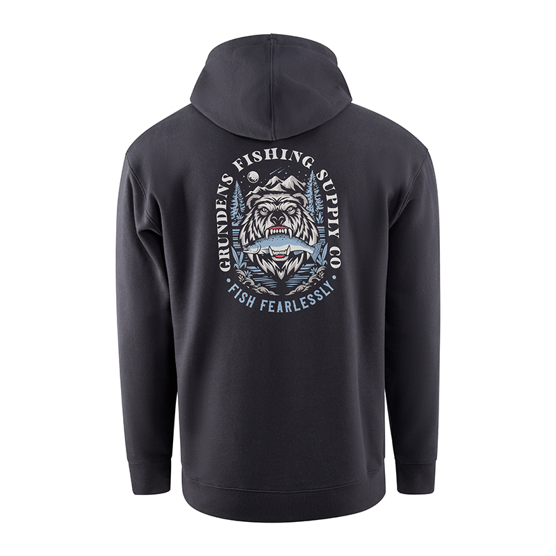 Le sweat à capuche Bear Essentials incarne le pur esprit de pêche de la nature avec un graphisme de pêcheur à la ligne saisissant, offrant confort et style sans fioritures.