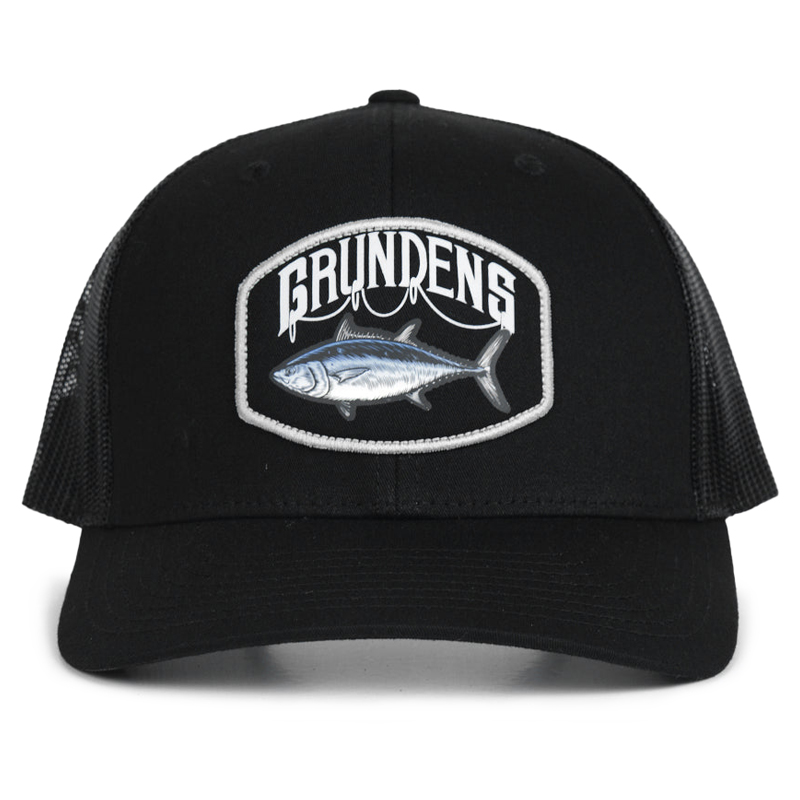 La Bluefin Trucker Solid Black de Grundén est une casquette trucker avec un joli motif de thon. Une casquette pour tous les pêcheurs en eau salée et ceux qui veulent montrer leur amour de la pêche !