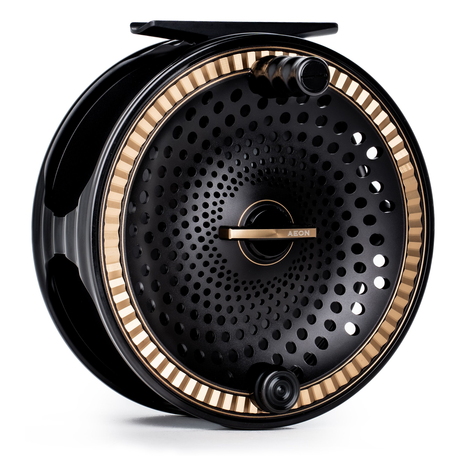 Le moulinet Aeon combine une esthétique scandinave intemporelle avec une technologie avancée. Sa face avant affiche une série de perforations en motif Fibonacci et une lunette cannelée pour un design raffiné, tandis que le cadre arrière contraste des textures mates et brillantes avec un indicateur de frein anodisé double couleur. Le système de freinage en carbone scellé offre 7,5 kg de puissance, idéal pour dompter les plus grands poissons. Son design anti-accroc empêche les nœuds, et le son distinctif de ce moulinet Guideline rappelle un moulinet classique.