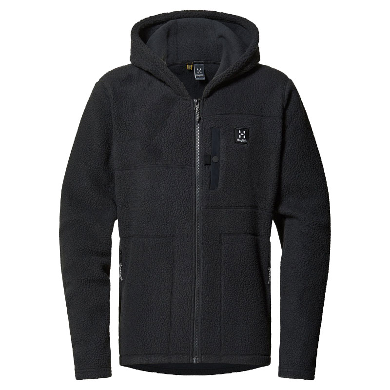 Haglöfs Malung Pile Hood Men True Black - Sortez sans vous soucier du temps qu'il fait. Cette veste est fabriquée en polaire de polyester recyclé à séchage rapide, une matière ultra-confortable et isolante qui respire bien et sèche rapidement, ce qui la rend adaptée à un large éventail d'activités.