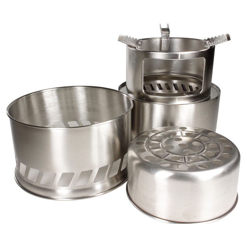 Un poêle à bois qui se chauffe avec des bâtons ou du petit bois et qui donne une combustion puissante et rapide, ce qui en fait un accessoire utile pour cuisiner en plein air !