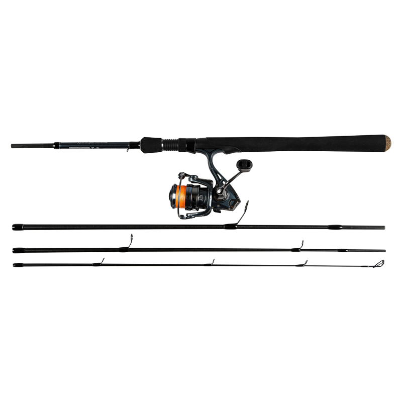 IFISH Helags Combo 7'. Ensemble de pêche composé d'une canne à pêche en graphite de 7', 210cm de long en 4 brins avec des détails modernes tels que des anneaux légers et une poignée en eva fendue, en combinaison avec un moulinet somptueux avec bobine en aluminium, 3 + 1 roulements à billes, arrêt rapide, etc. Livrée avec du fil tressé et dans un sac de protection. Convient pour des leurres de 3 à 15g.