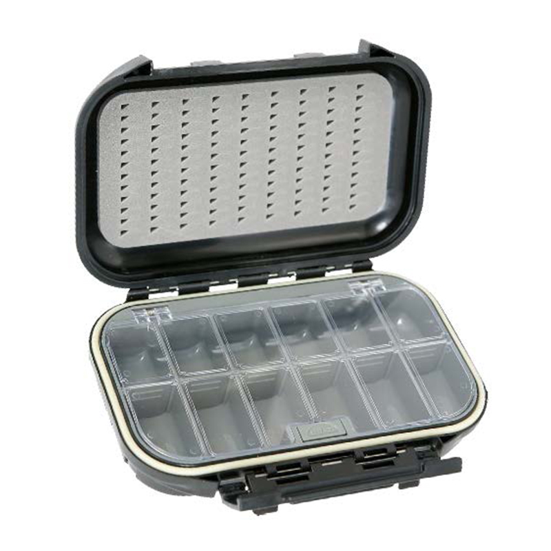 Trois boîtes qui sont parfaites pour tout le nécessaire pour une journée réussie sur la glace. Le couvercle est recouvert de silicone découpé pour les hameçons etc. et le fond comporte plusieurs compartiments réglables pour les jigs.