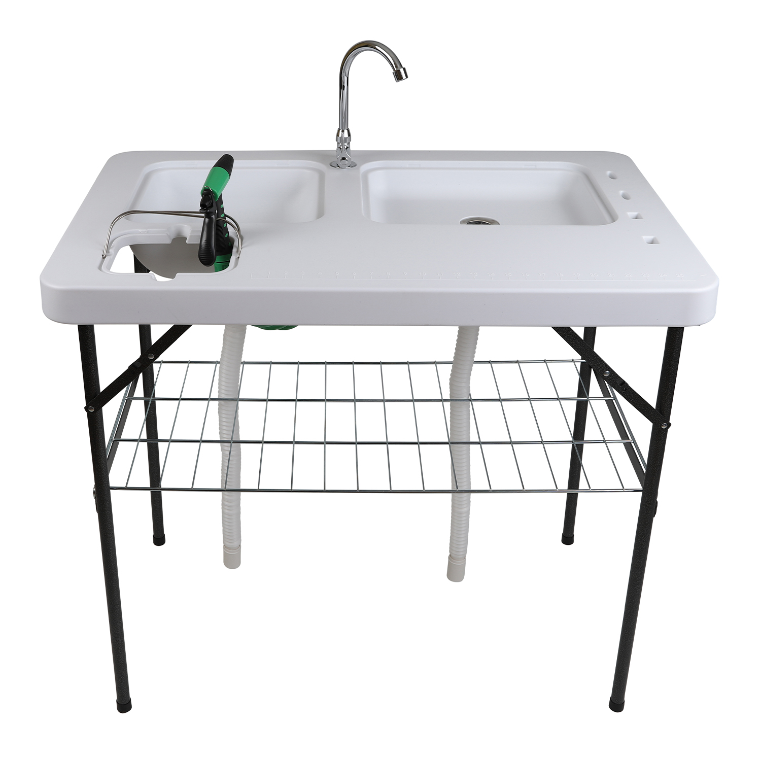 L'Arbetsbord IFISH est le compagnon idéal des sorties de pêche, offrant un poste de travail robuste et pliable, parfait pour nettoyer vos prises ou cuisiner en plein air. Fabriquée en plastique durable, cette table comporte deux éviers spacieux munis de couvercles, un robinet pratique et un tuyau muni d'un raccord Gardena pratique, assurant un écoulement continu de l'eau. De plus, l'étagère pratique située en dessous offre un espace de rangement supplémentaire pour tout votre matériel de pêche ou vos accessoires de cuisine. Que vous prépariez du poisson frais au bord de la rivière ou un festin dans votre cuisine extérieure, cette table de 100 cm par 65 cm par 90 cm améliore votre expérience en plein air.