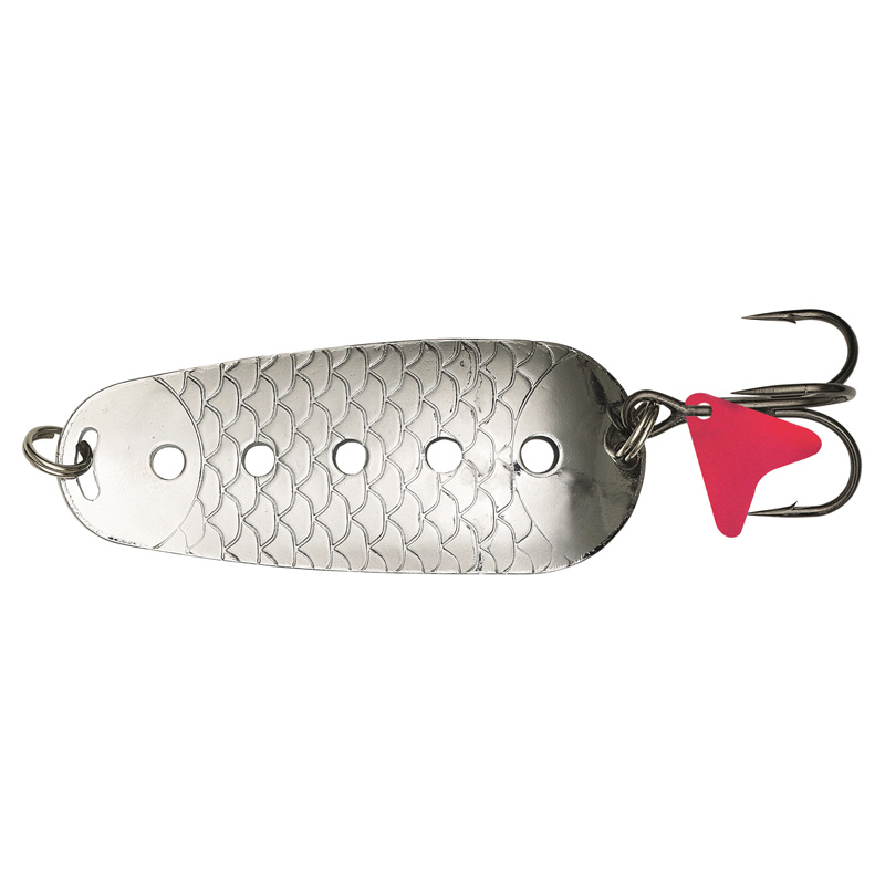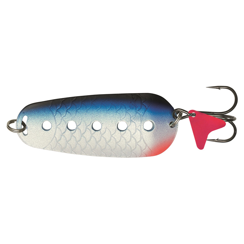 Le Kinetic Spoony a une action erratique qui imite un poisson-appât en fuite – délivre des vibrations sous-marines et des flashs accrocheurs. Les petits trous créent des vibrations subtiles, incitant les poissons à frapper. Fonctionne parfaitement pour les gros prédateurs comme le brochet et le saumon.