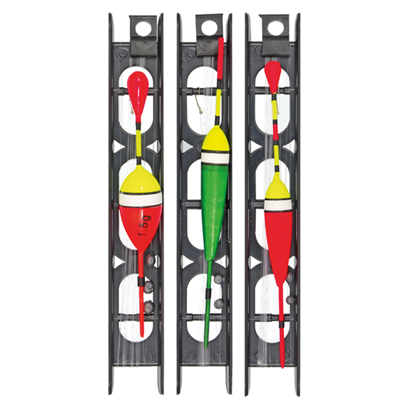 Trois plates-formes de pêche à flotteur prêtes à l'emploi.