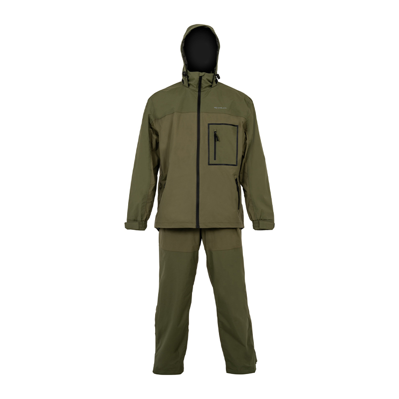 Ce combinaison imperméable offre une protection fiable quand la météo se gâte, que ce soit pour de longues marches vers le poste ou pour tenir toute la journée au bord de l’eau. La veste coupe le vent et garde le haut du corps au sec, tandis que le bib & brace protège efficacement jambes et bas du dos, même en position assise ou à genoux. L’ensemble reste confortable en mouvement, idéal pour crapahuter sur les berges, en barque ou en float tube.