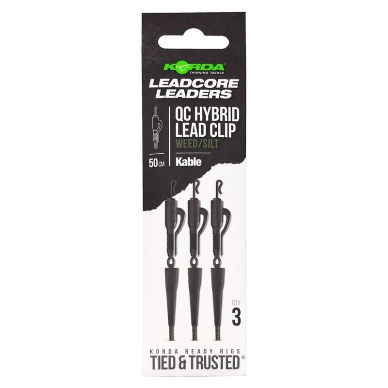 Chaque leader de 1 m est conçu avec notre leadcore Kable ultra-résistant et coulant rapidement, avec un Hybrid Lead Clip QC à une extrémité et une boucle épissée à l’autre pour une fixation rapide sur la ligne principale.