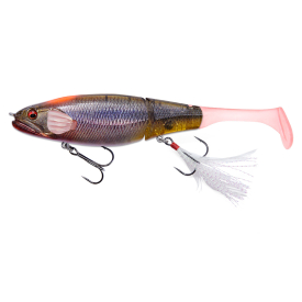 Le Megabass I-Brake est un swimbait hybride innovant doté d'une nageoire de frein qui crée une action dansante et irrégulière lors des pauses. Associée à une queue shad souple et une nageoire en élastomère, cette combinaison génère de subtiles vibrations corporelles, idéales pour provoquer les poissons peu actifs, notamment après la fraie ou en automne.
