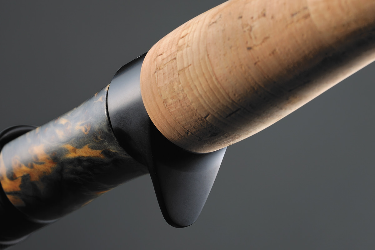 Chaque pièce de "Bird's Eye Wood", un arbre naturel rare, est sculptée et traitée avec une teinture unique pour augmenter sa résistance à l'eau et sa durabilité. Grâce à son poids spécifique élevé, il est utilisé comme composant fonctionnel pour rapprocher le centre de gravité de la canne à pêche de la main lorsque le moulinet est attaché, ce qui assure un bon équilibre. (*En fonction des stocks d'arbres, des délais d'approvisionnement, etc., le nombre de production peut être limité ou il peut arriver que nous ne soyons pas en mesure d'accepter des commandes).
