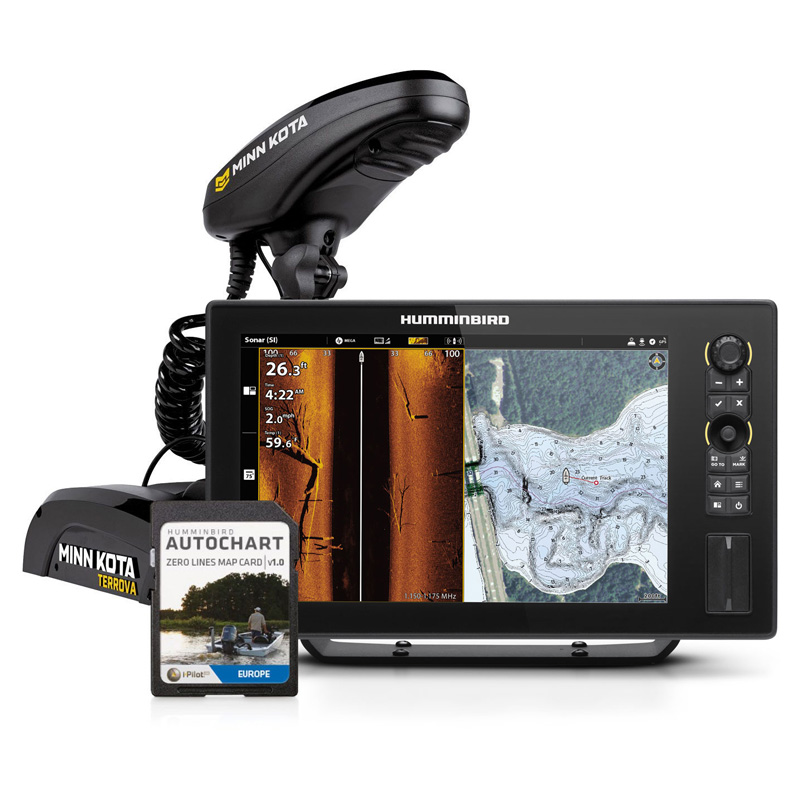 Minn Kota OBN Terrova 55 Solix 12 - Connectez Humminbird et Minn Kota et créez un réseau où les appareils se parlent. Laissez Humminbird Solix 12 contrôler votre moteur électrique Minn Kota, créez des itinéraires, circulez autour des mouillages, suivez les contours de profondeur sur une carte Lakemaster. L'ensemble comprend la carte AutoChart ZeroLine, le support rapide MKA-21 et le câblage nécessaire pour connecter les unités. Complet avec fusibles et connecteurs.
