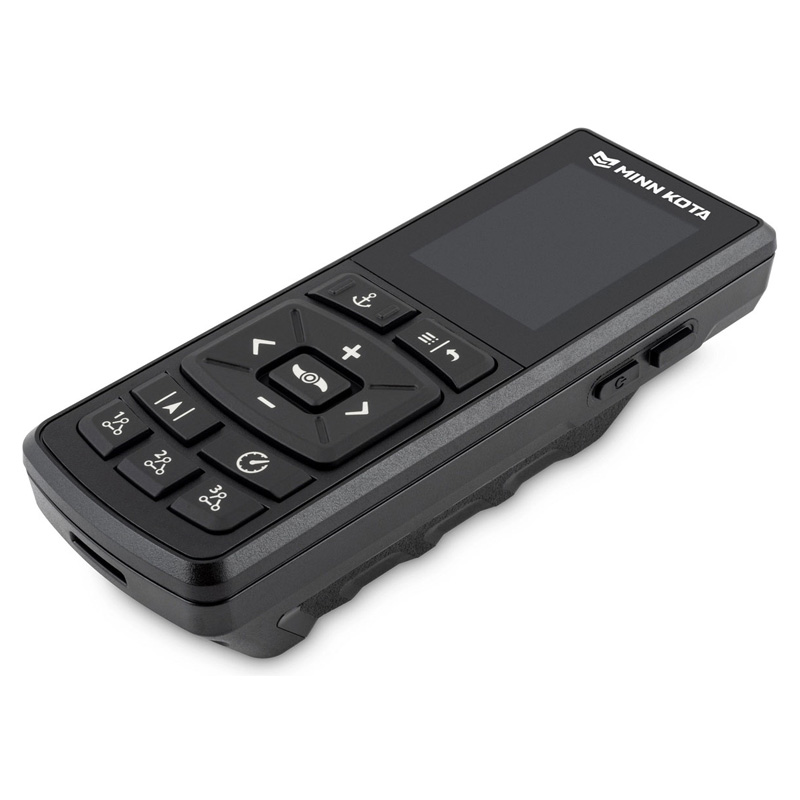 La télécommande étanche est légère et présente des menus conviviaux et un clavier simplifié avec quatre boutons personnalisables One-Boat Network, trois sur le clavier et un sur le côté. Programmez ces boutons pour les fonctions qui vous conviennent, contrôlez les ancres au sol Talon ou Raptor connectées, l'arrimage/déploiement automatique et le Power Trim avec les modèles RT Instinct et Ulterra ou marquez un waypoint sur un écran Humminbird connecté.