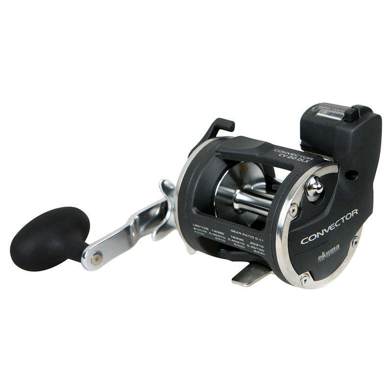 En mer, vous pouvez rapidement voir à quelle profondeur le poisson précédent s'est tenu et lorsque vous pêchez à la traîne, vous avez un contrôle total de la distance à laquelle vous avez placé vos leurres. Equipé d'un système de freinage puissant et sensible, facile à régler avec la roue crantée.