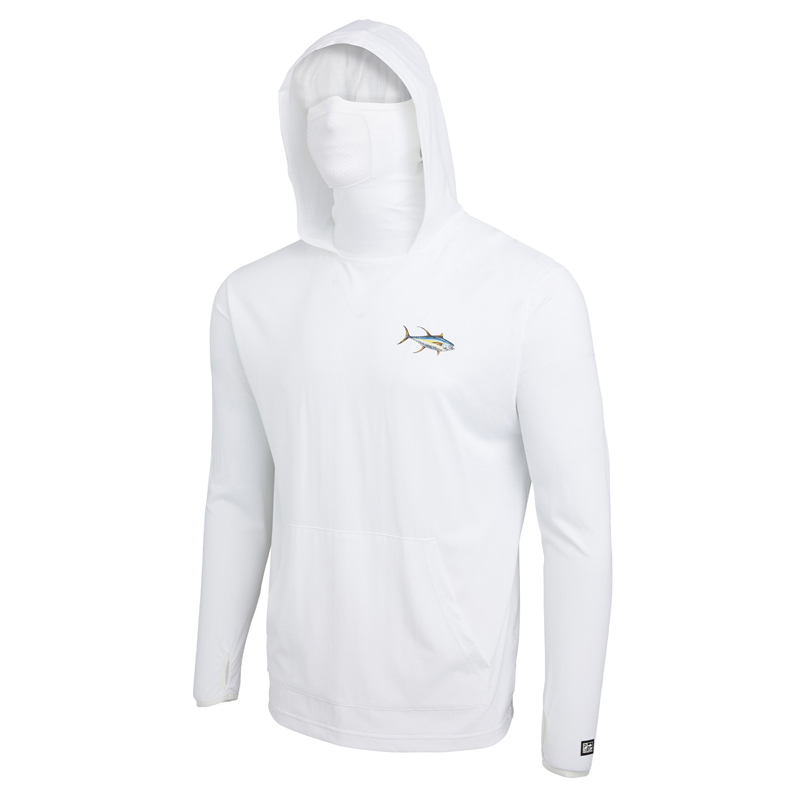 Pelagic Defcon - Starboard White - La nouvelle chemise Pelagic de haute performance avec un masque facial intégré possède des caractéristiques supplémentaires qui en font le point d'ancrage de notre système de protection solaire. Cette chemise de pêche ultra-légère est fabriquée à partir de notre matériau Aquatek, le plus portable et le plus polyvalent, et contient tout ce dont vous avez besoin pour passer une longue journée sur l'eau sans coups de soleil.