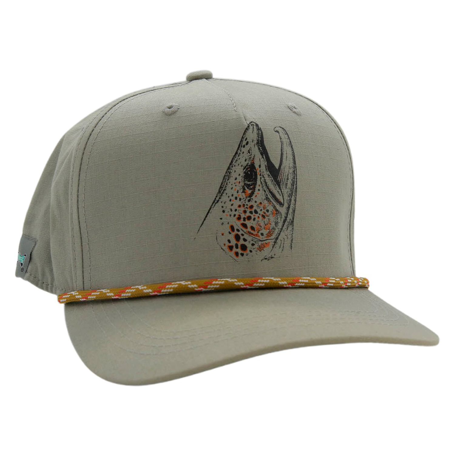 La casquette RepYourWater Rising Brown est un modèle 5 panneaux en vert sauge avec devant carré et coupe structurée – idéale pour un style pêche moderne.