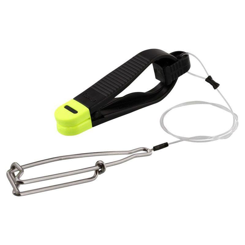 • La ligne de pêche est saisie entre les coussinets souples et une tension de libération variable est obtenue en déplaçant la ligne dans ou hors des mâchoires