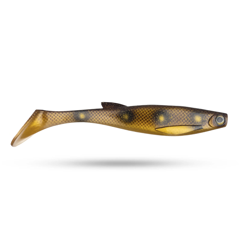 Un leurre souple shad en forme de boîte qui déplace beaucoup d'eau grâce à sa pagaie surdimensionnée. Comme tous nos leurres souples sur-mesure, ces leurres sont sans phtalate !