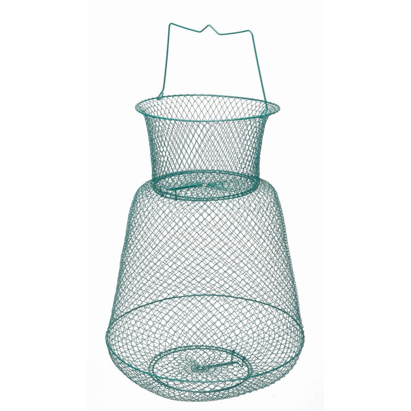 Ce style de bourriche classique a été utilisé par des générations de pêcheurs. Couvercle rabattable à charnière à ressort.