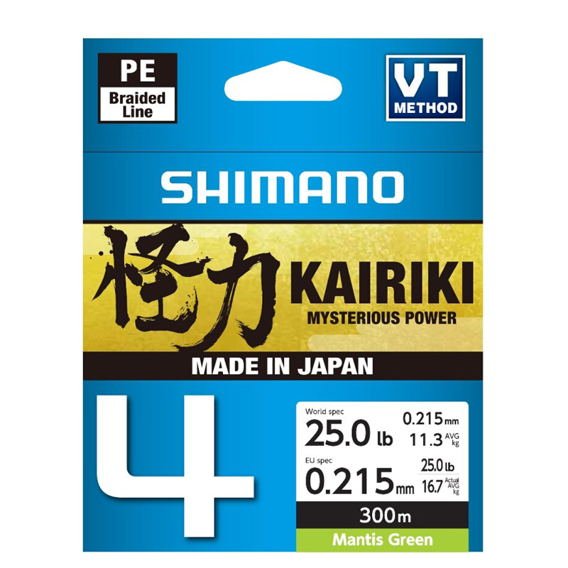 Shimano Kairiki 4 300m Mantis Green est une solide ligne de tresse à 4 brins fabriquée au Japon avec une technologie de tressage renouvelée. Une ligne de tresse excellente pour le jigging !