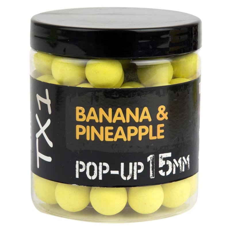 Shimano TX1 Banana & Pineapple Pop-up - Les Pop-ups TX1 sont l'appât parfait à utiliser avec les bouillettes TX1 si vous souhaitez un appât flottant ou équilibré de manière critique.