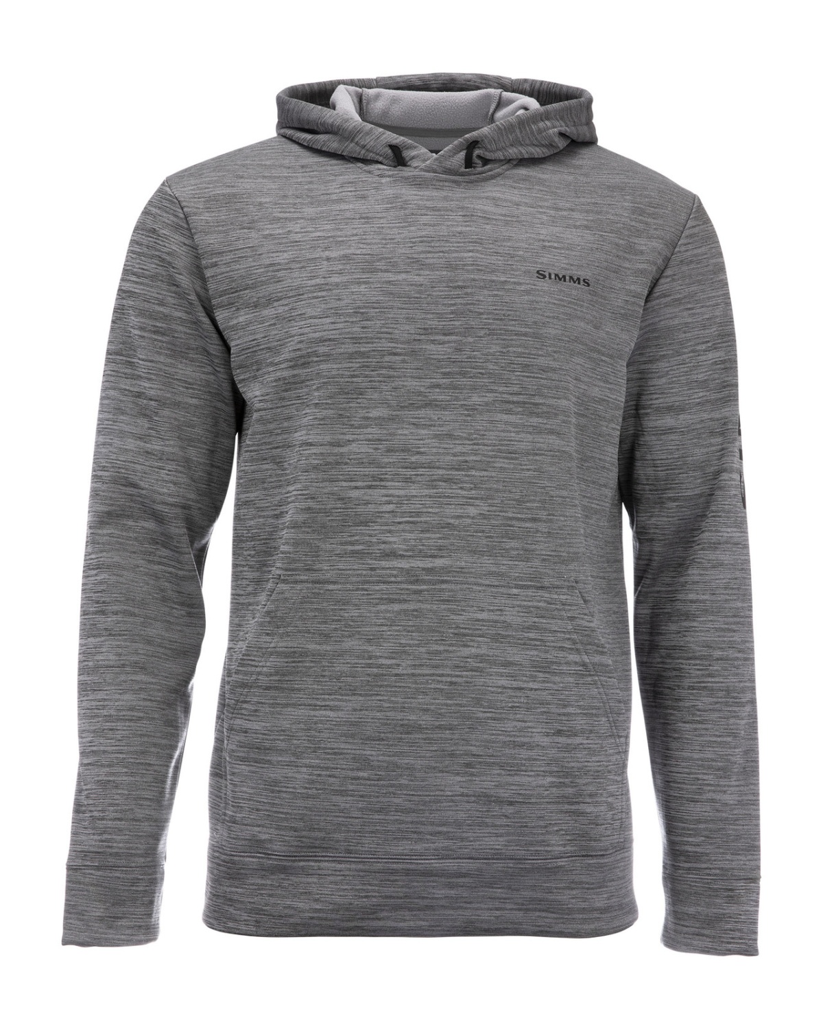 Simms Challenger Hoody Steel Heather - Une veste à capuche confortable qui protège de la chaleur, du froid et du vent. Parfaite comme couche extérieure ou intermédiaire.