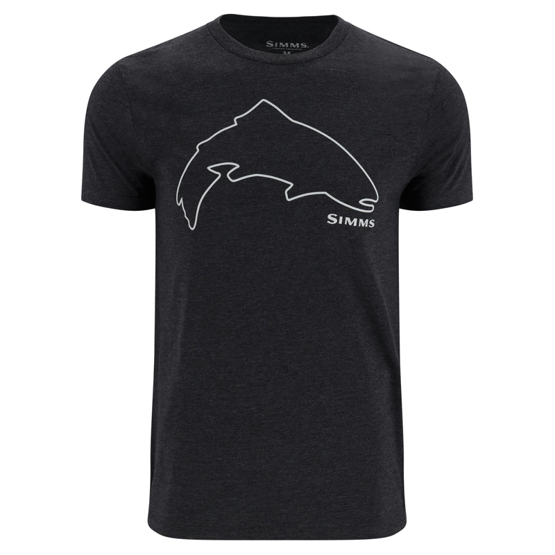 Simms Trout Outline T-Shirt Dark Gunmetal Heather est un t-shirt à manches courtes avec un logo Simms stylisé en forme de poisson. Fabriqué à partir d'un mélange de coton qui allie le confort à une coupe durable qui s'adapte à tous vos mouvements.