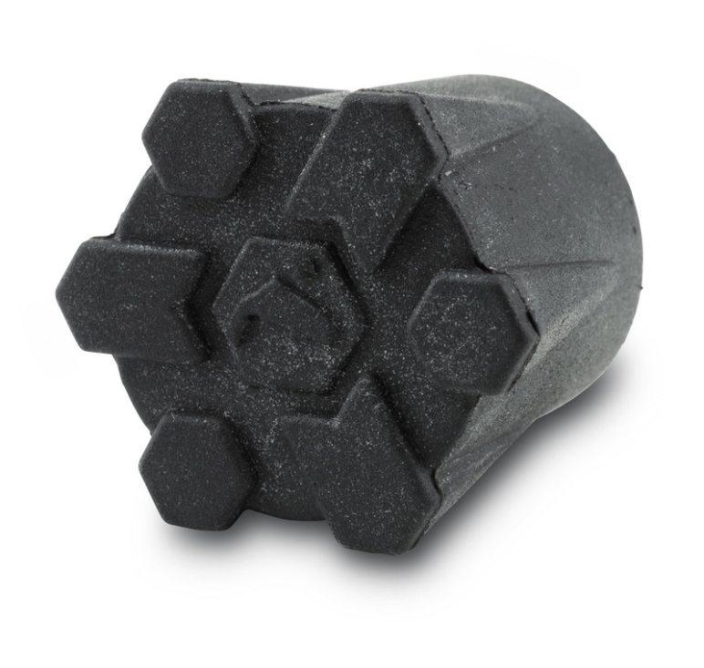 Un embout en caoutchouc pour une meilleure adhérence au fond de la rivière.