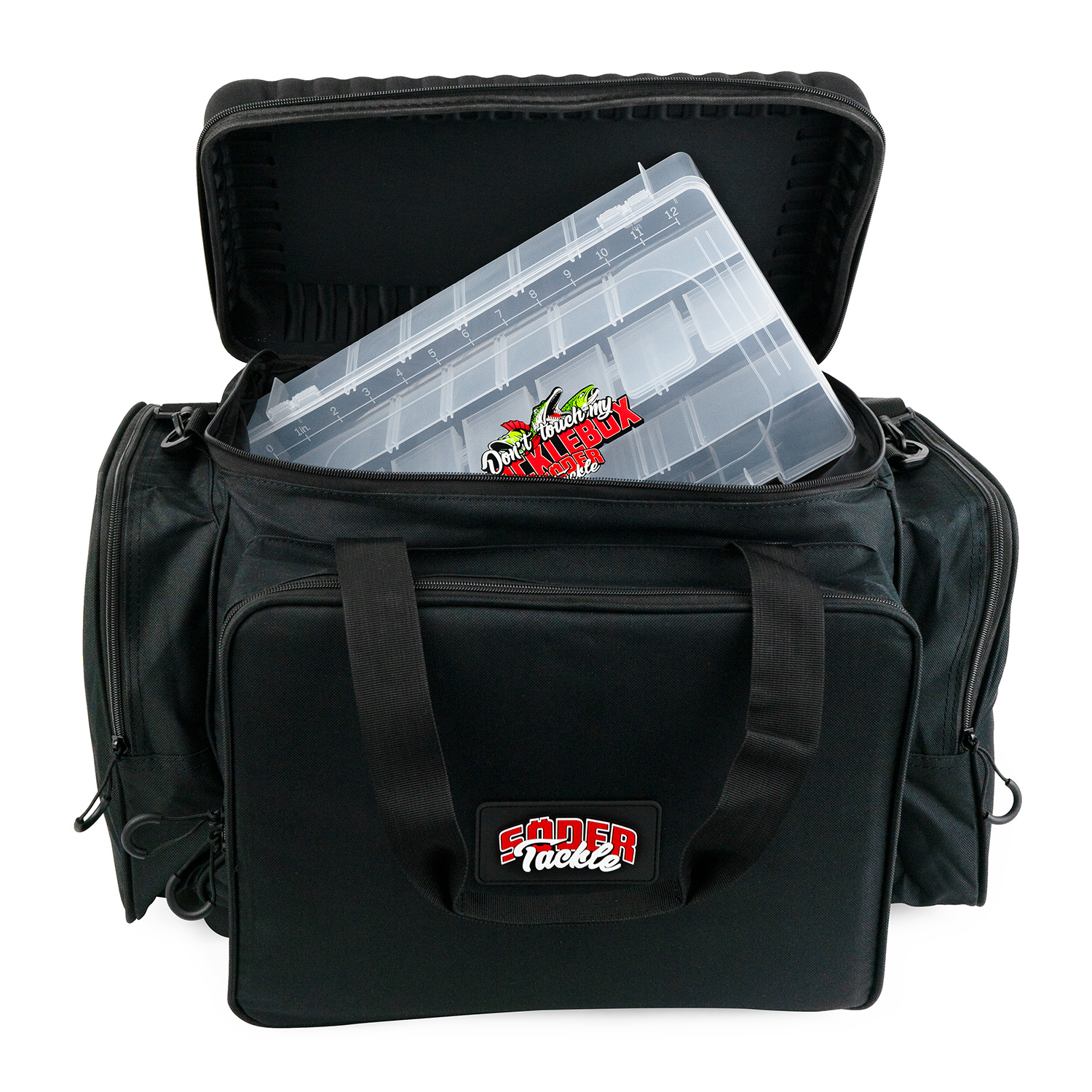 Ce holdall est doté d'un compartiment principal spacieux avec trois boîtes à leurres (3730) incluses, et il peut en contenir jusqu'à quatre. La poche latérale avant est également adaptée au format 3730, offrant une grande capacité de rangement pour vos leurres. Les côtés de la sacoche permettent de ranger vos accessoires de pêche comme les pinces, les balances et les rubans à mesurer. Le couvercle rigide permet d’utiliser le sac comme une petite table pour la préparation des leurres. Facile à transporter avec la poignée et la bandoulière, il est parfait pour le spinning.