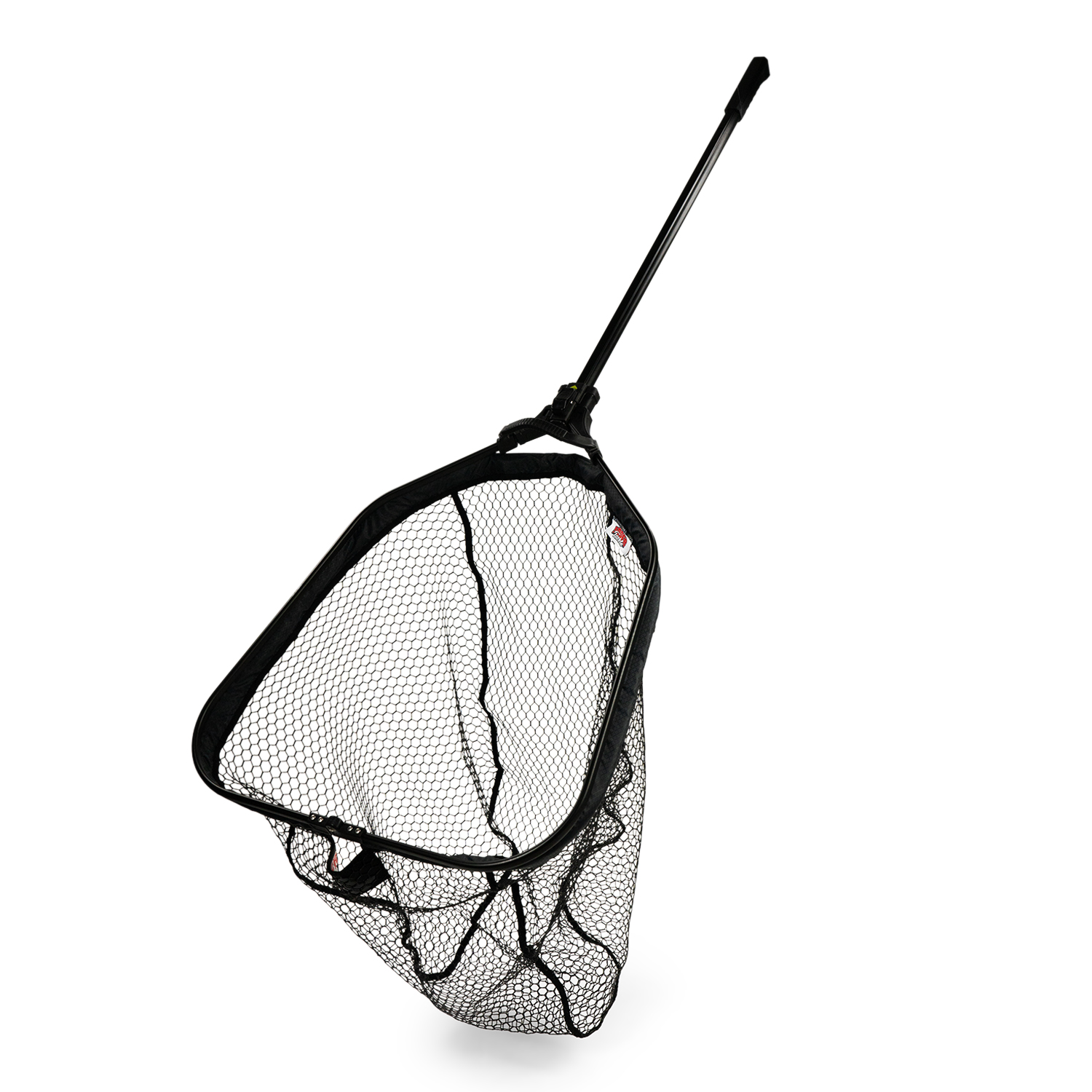 Cette épuisette combine robustesse et soin des poissons grâce à son filet en caoutchouc et à sa construction solide. Les poignées en caoutchouc, à la fois sur le manche et à l’arrière, offrent une prise sûre, et deux mécanismes de pliage permettent un rangement facile.