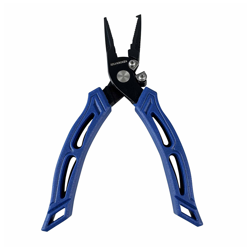 Pince à anneaux brisés en acier carbone avec revêtement supplémentaire pour une durée de vie prolongée. Elle intègre un coupe-fil efficace et une zone pour sertissures, pratique pour ajuster bas de ligne et petits accessoires au bord de l’eau. Les poignées ajourées réduisent le poids tout en gardant un très bon maintien, utile lors des manipulations répétées.