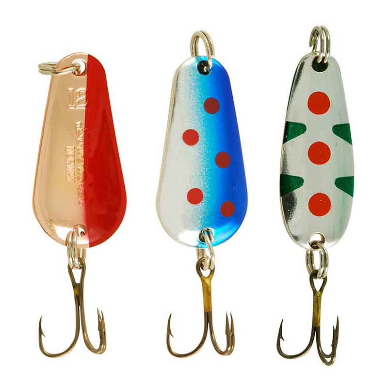 Cet ensemble réunit deux cuillers Spesial Classic de 7 g et une Aura Lillauren de 7 g. Des valeurs sûres pour la truite, idéales en rivière comme en lac. Le poids de 7 g permet de bonnes distances de lancer tout en gardant une nage vive et attractive, même dans les courants modérés.