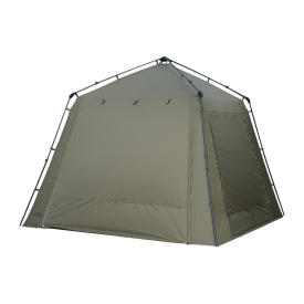Fabriqué en polyester 210D avec enduction PU 8 000 mm HH, il offre une excellente protection contre la pluie et le vent. Le kit de piquets fourni permet de créer une avancée frontale pour gagner en espace de vie. La façade propose au choix un panneau plein vert ou une porte en moustiquaire, complétés par deux grandes aérations latérales en moustiquaire pour adapter la ventilation selon la météo.