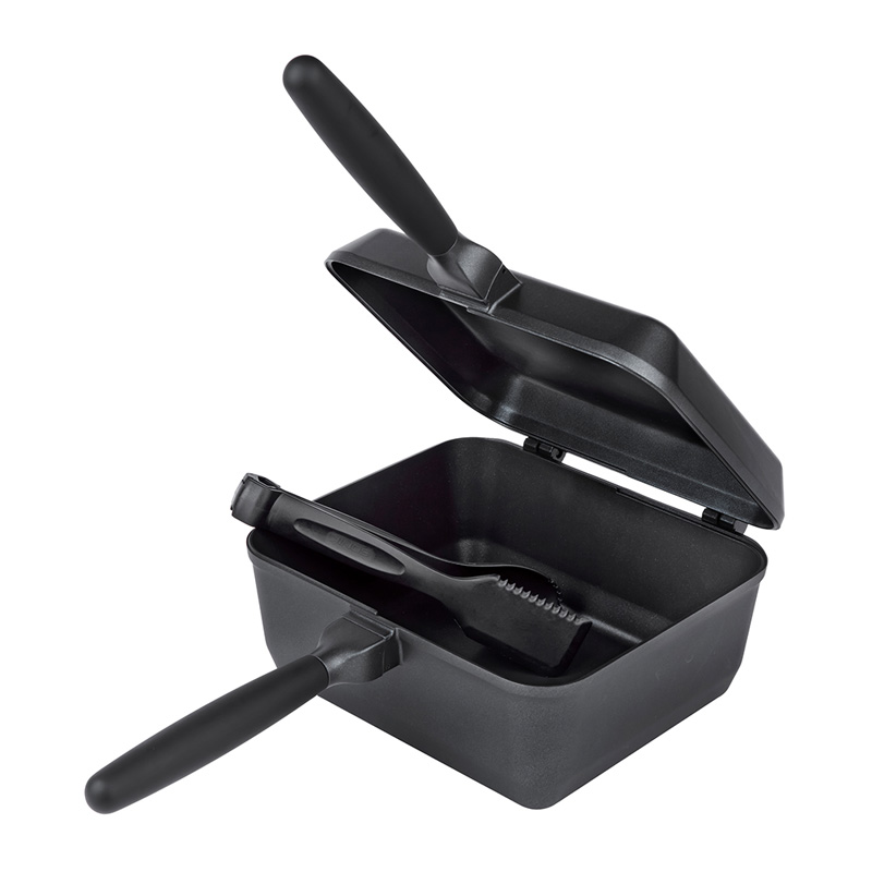 Le Sonik Sizzla Multi-Pan Set Deep offre une solution de cuisson polyvalente et bien pensée pour les sessions de pêche. La poêle supérieure sert de couvercle mais peut se détacher grâce aux charnières renforcées D-Hinge pour devenir une poêle indépendante. Avec ses 30 mm de profondeur et son format rectangulaire, elle laisse assez de place pour cuire plusieurs ingrédients en même temps.