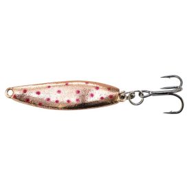 Équipé d'un très bon trois hameçons et de deux anneaux à ressort. La truite, la truite arc-en-ciel et les poissons similaires ont tendance à vouloir sauter et à essayer de secouer l'appât lorsqu'ils sont accrochés. Avec deux anneaux à ressort, le risque est d'autant plus faible que le poisson parvient à se détacher. Un très bon appât pour la truite, l'omble chevalier et la truite arc-en-ciel tout simplement, qui devraient toutes avoir quelques variantes dans leur boîte à leurres.