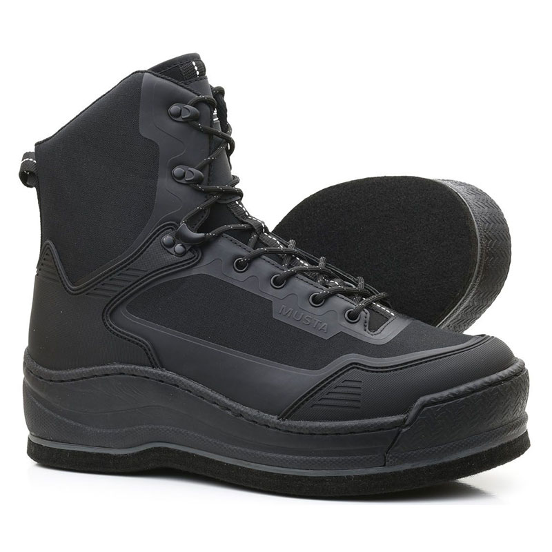 La Musta Michelin est un modèle moderne et populaire parmi les pêcheurs. Sa tige en polyester balistique renforcée par des impressions TPU garantit durabilité et légèreté. La semelle en feutre classique offre un excellent grip sur les surfaces mouillées, même recouvertes d’algues, et peut être équipée de crampons en tungstène pour des conditions plus extrêmes. Avec sa semelle intermédiaire en EVA et son pare-chocs en caoutchouc, cette chaussure est un choix fiable et confortable.