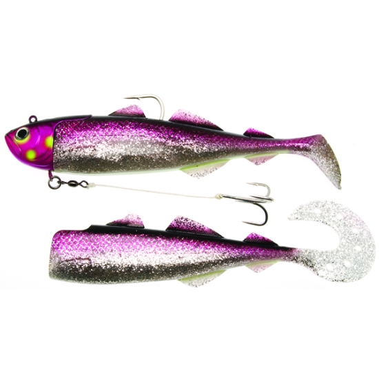 Elle a un mouvement et un modèle de nage incroyablement sexy - même pêché lentement - basé sur le lieu noir juvénile - le souper de poisson préféré des gros spécimens trophées chassant les mers et les rivages autour de la Norvège. Nous avons inclus deux corps différents - le curltail pour une action de nage douce et semblable à un ver (même à la vitesse la plus lente) - et le paddletail pour cette action "prenez-moi maintenant". Nous avons passé des années à tester et à perfectionner le mouvement, en essayant tous les changements possibles dans la forme, la taille et la répartition du poids. Les guides expérimentés de la pêche en mer nordique qui l'ont testé pensent maintenant que nous avons réussi - et certains poissons effrayants sont d'accord !