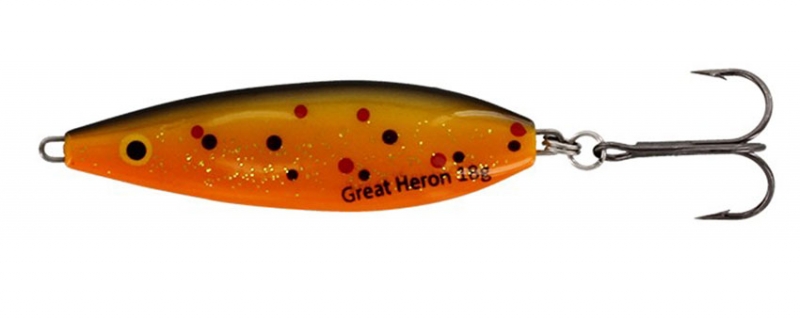 Dès le début, il a prouvé son efficacité - non seulement pour la truite et le saumon, mais aussi pour des espèces comme l'aspe, la perche et le brochet. Le Great heron peut être récupéré rapidement ou lentement. Quelle que soit la vitesse, il a une action très vive qui va déclencher l'attaque. Pas étonnant que ce leurre soit devenu l'un des leurres les plus populaires en Scandinavie!